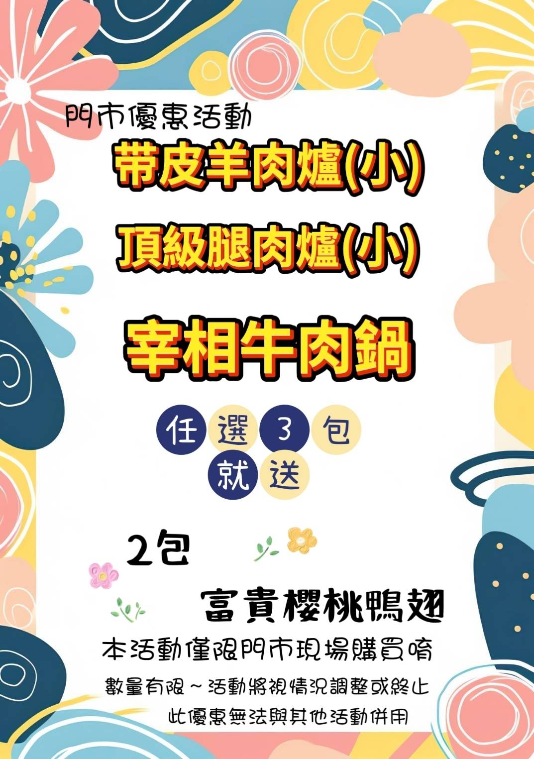 帶皮羊肉爐(小);頂級腿肉爐(小);宰相牛肉鍋