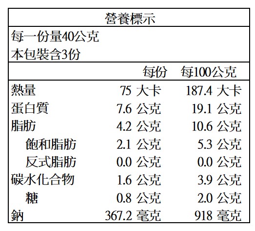 營養標示: