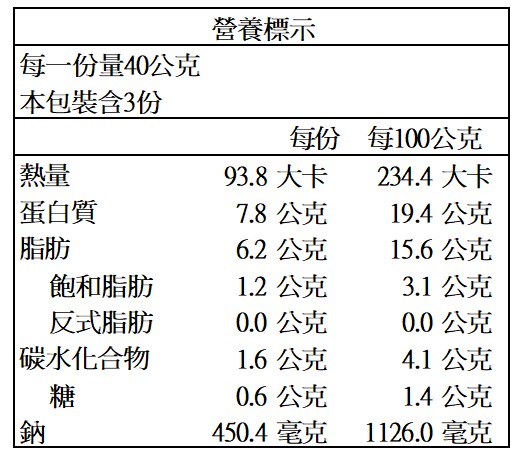營養標示: