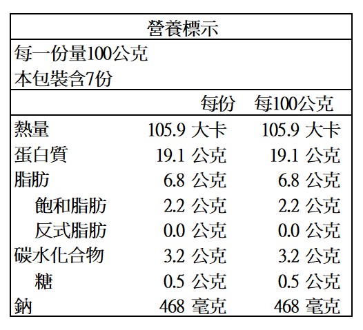 營養標示:
